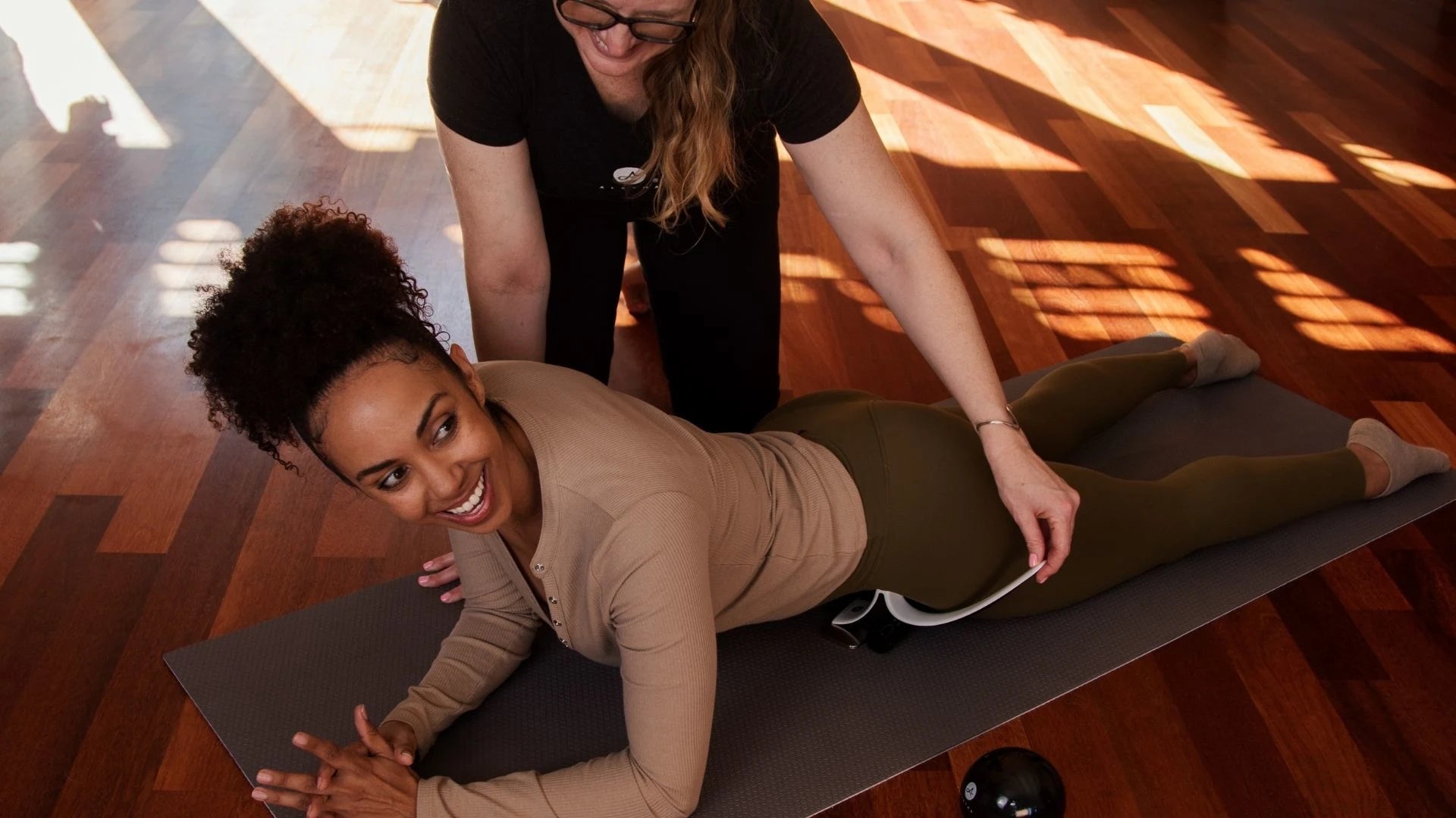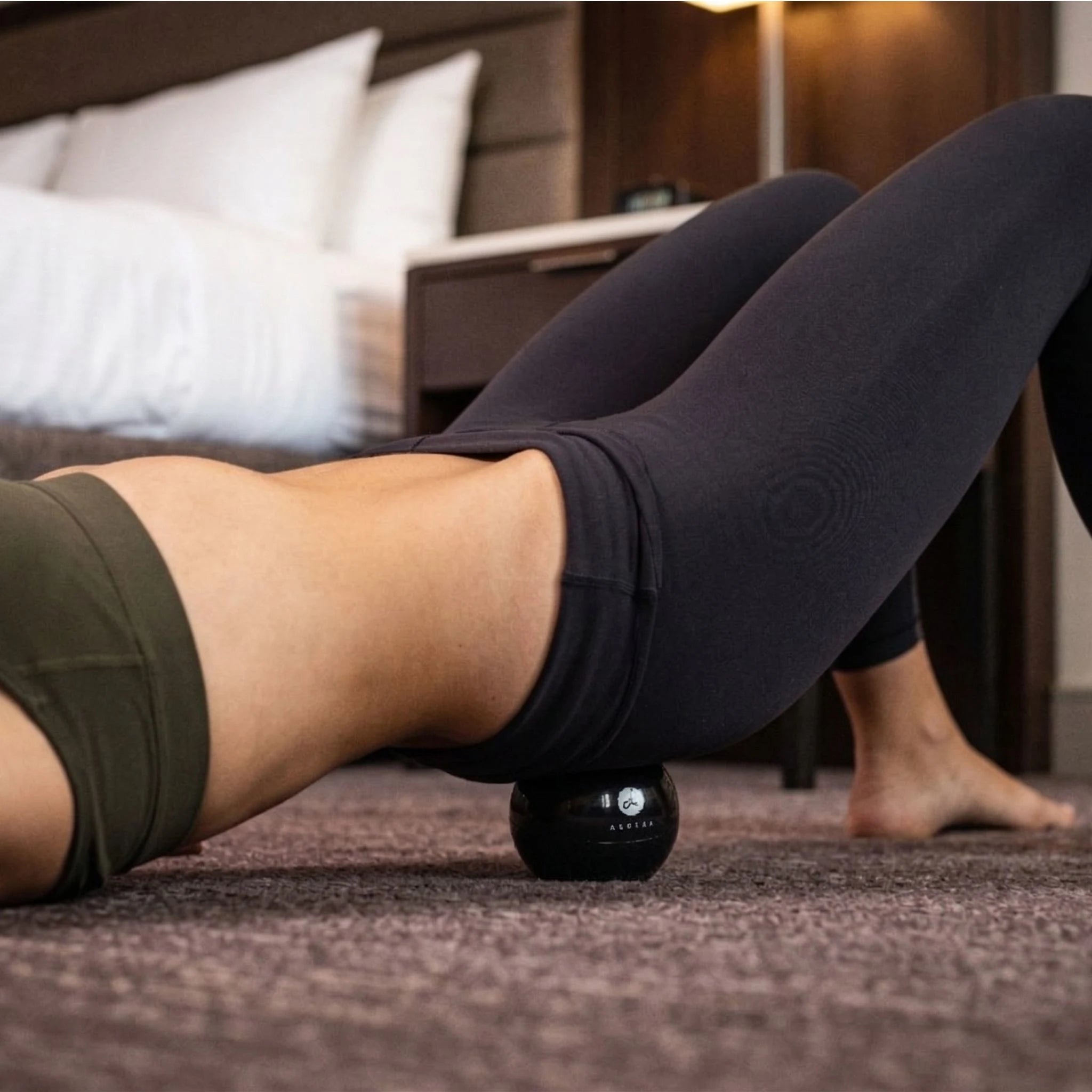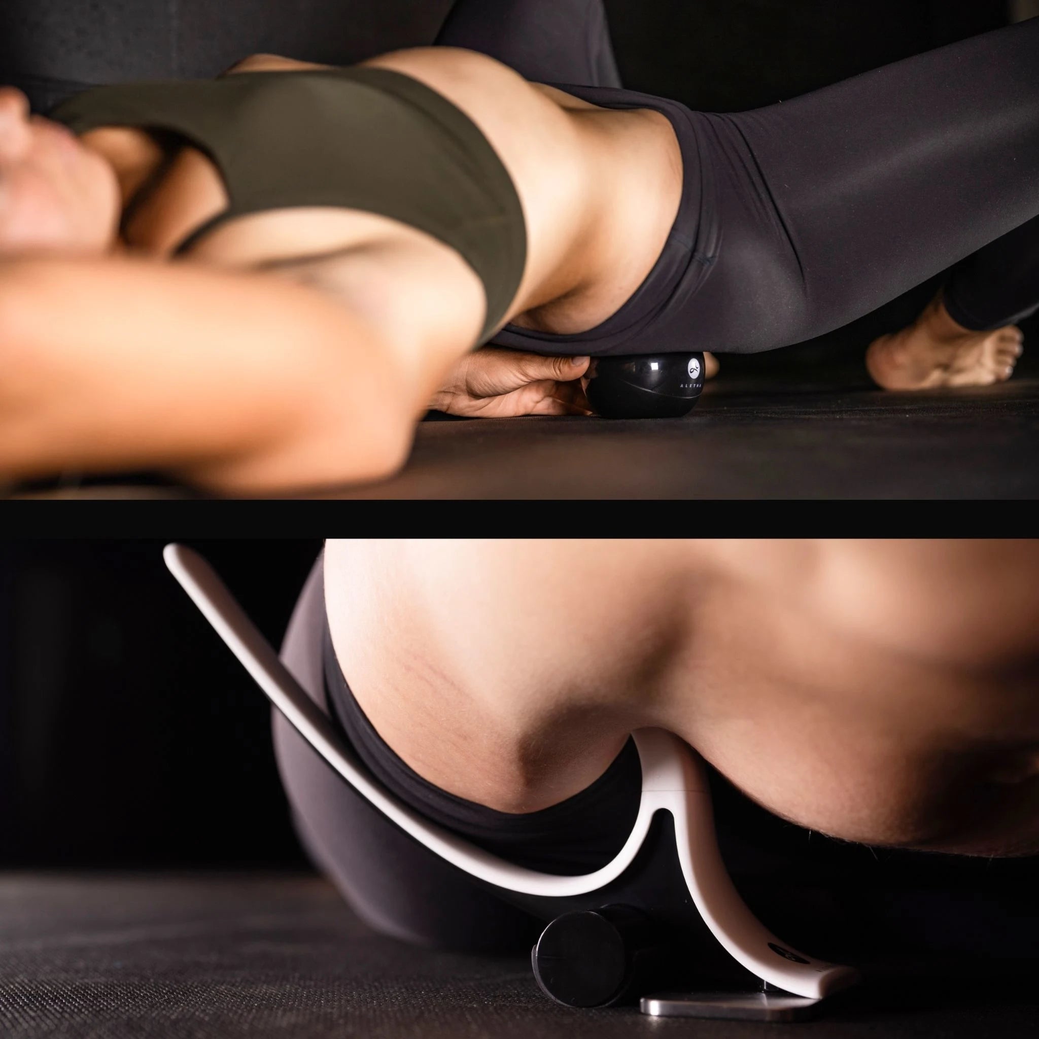 Hip Hook (Mark) releases the iliacus and psoas, the deep hip flexors affecting alignment from your back to your toes. Orbit releases the piriformis and deep hip rotators. Foundation first.