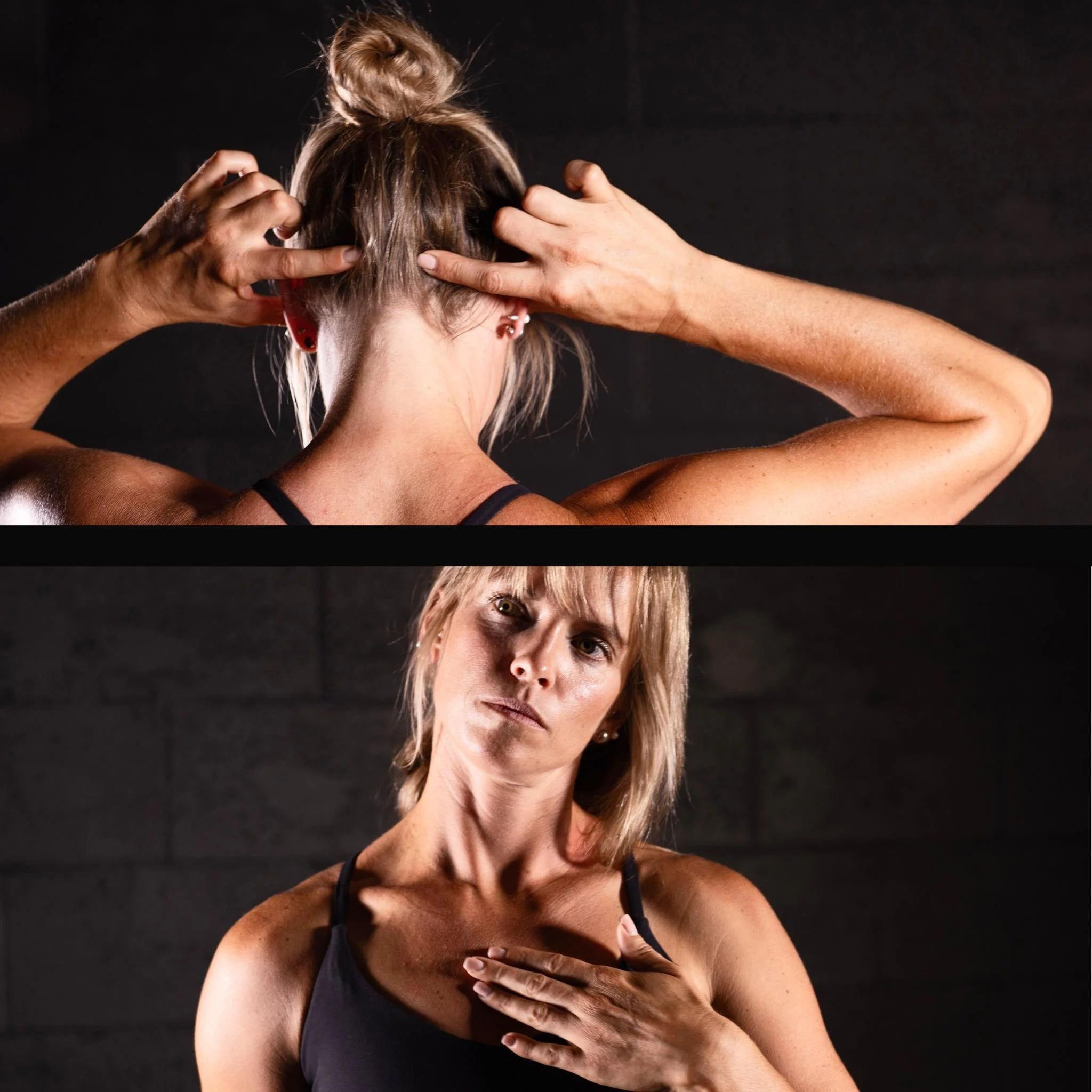 Range targets the suboccipitals, upper trap, and pec minor, neck and shoulder muscles that hold tension because of stress and poor posture.