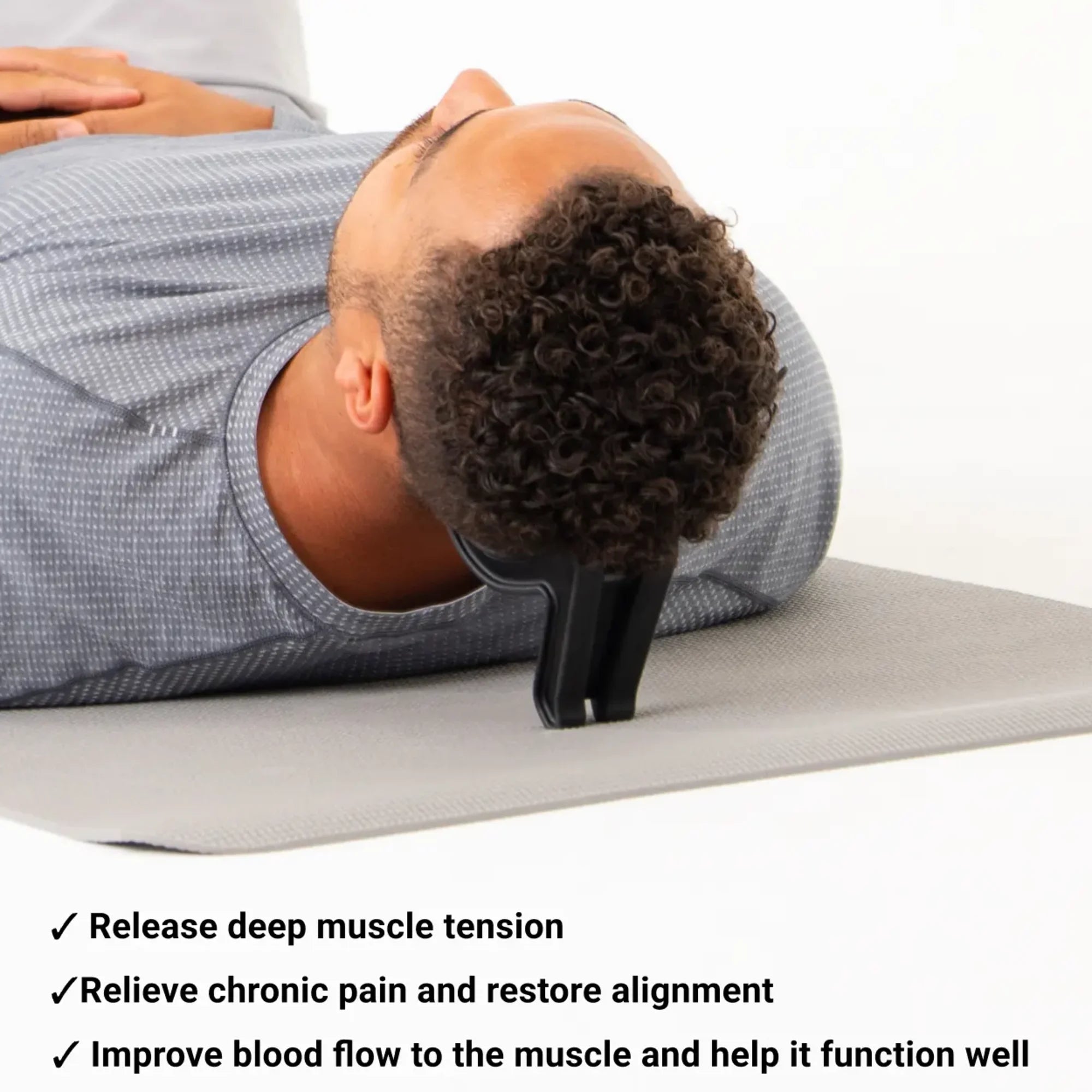 Range: Relieves neck tension, headaches, and shoulder strain. Targets upper traps, suboccipitals, and pec minor