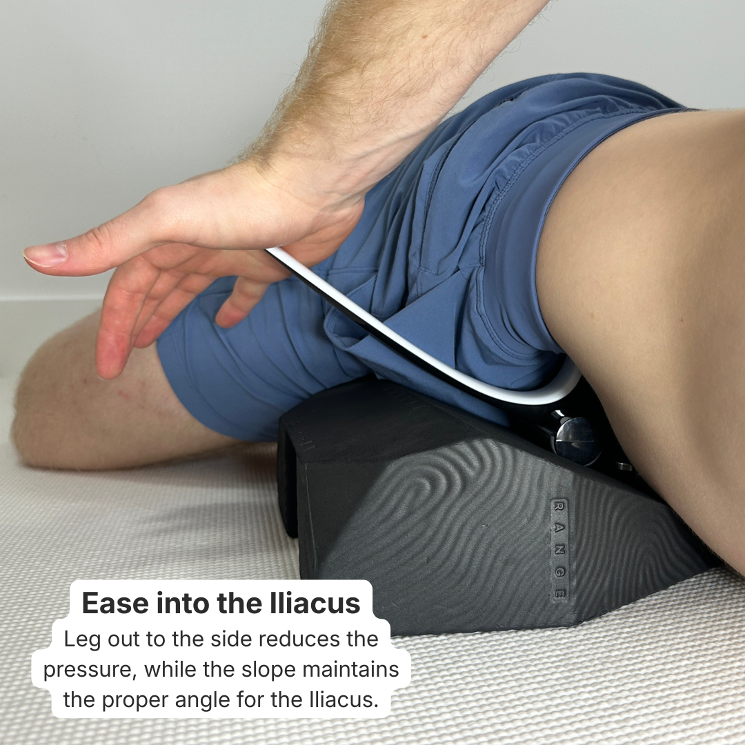- Reduces bodyweight on the iliacus for a lighter touch on days when you need less pressure