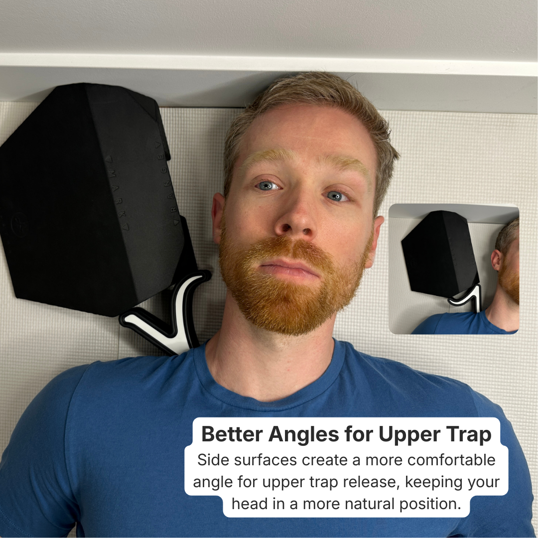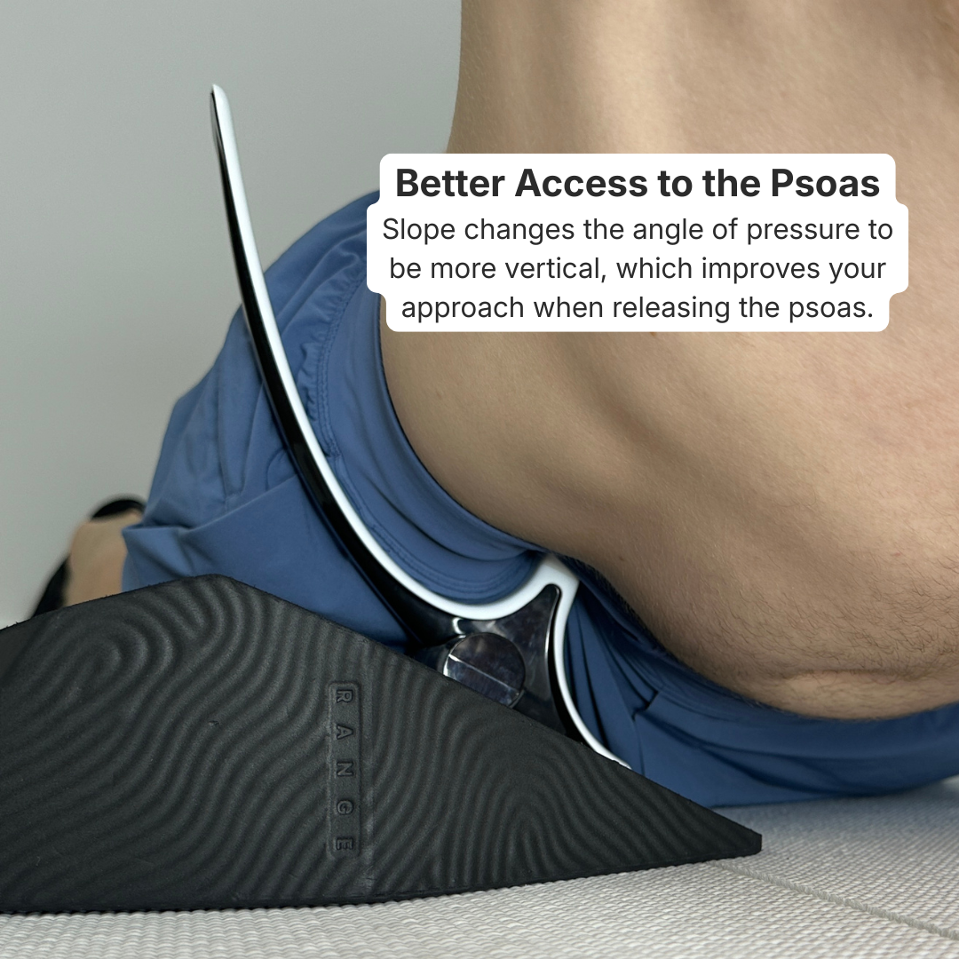 The Wedge doesn’t make the Hip Hook or Range work, you already know they do. What it addresses is the setup friction that competes with your release: the effort of finding the right angle on the psoas, stabilizing the Range against the neck without tension, or adjusting for your body size or tightness level on a given day.