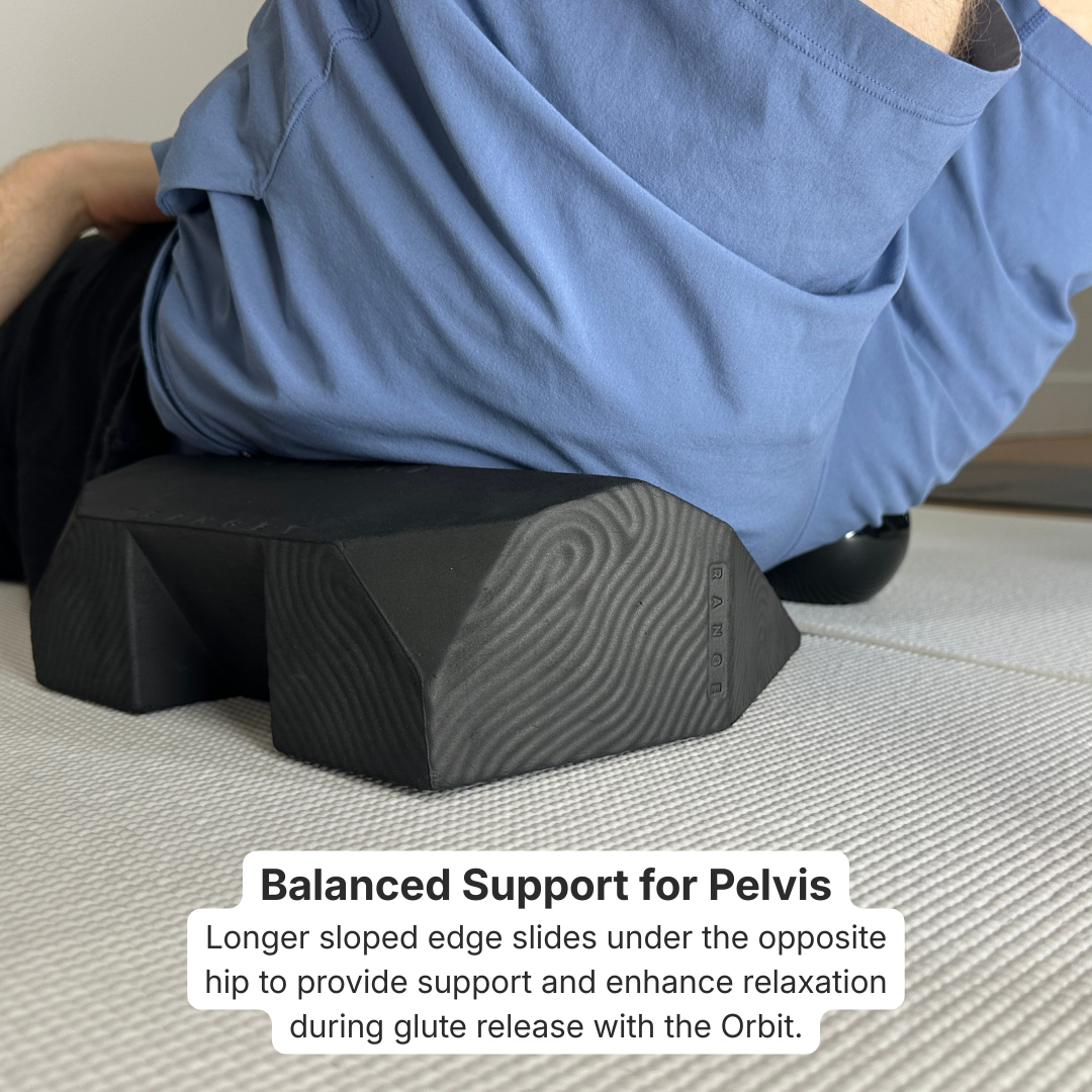 Supports the opposite hip during glute and piriformis work to keep the pelvis level and the body relaxed