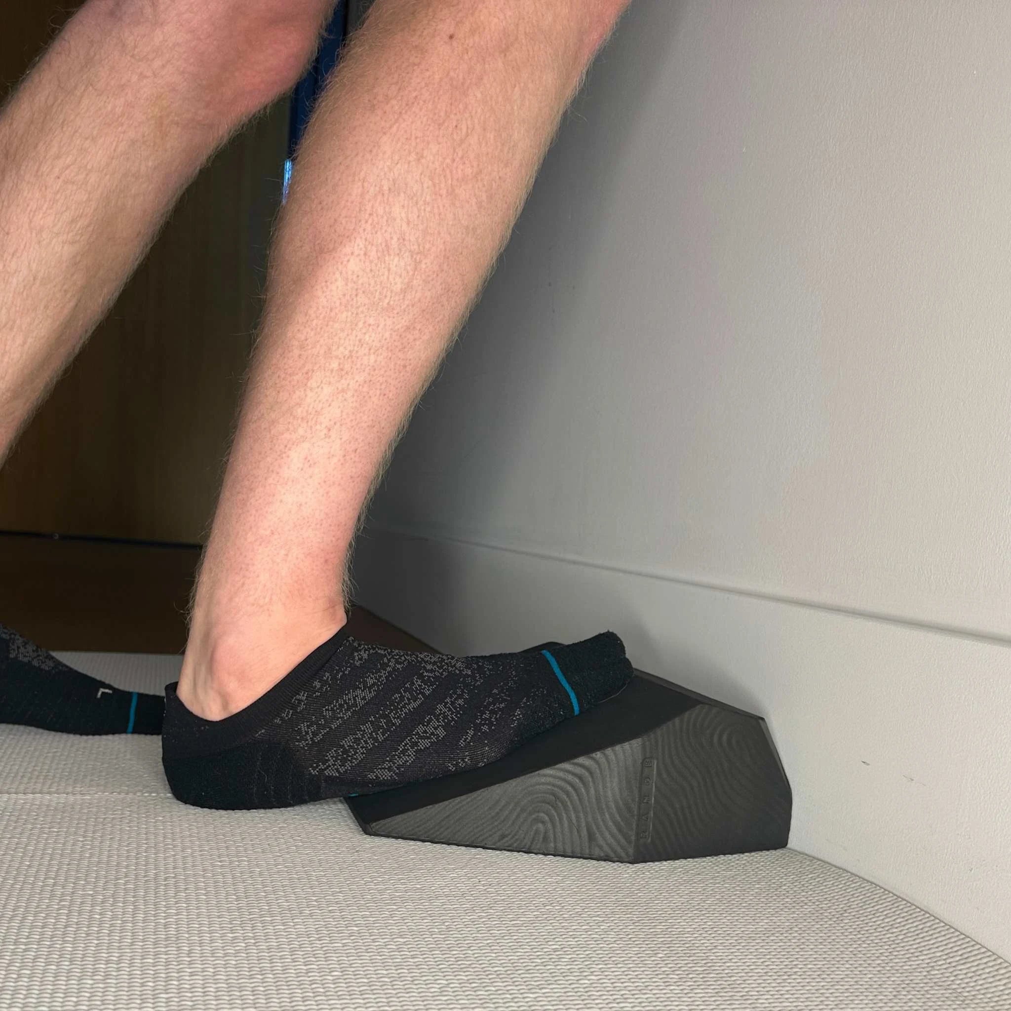 - Calf and ankle mobility — place one or both feet on the sloped edge while standing, targeting the calf tightness that often develops as compensation for tight hip flexors