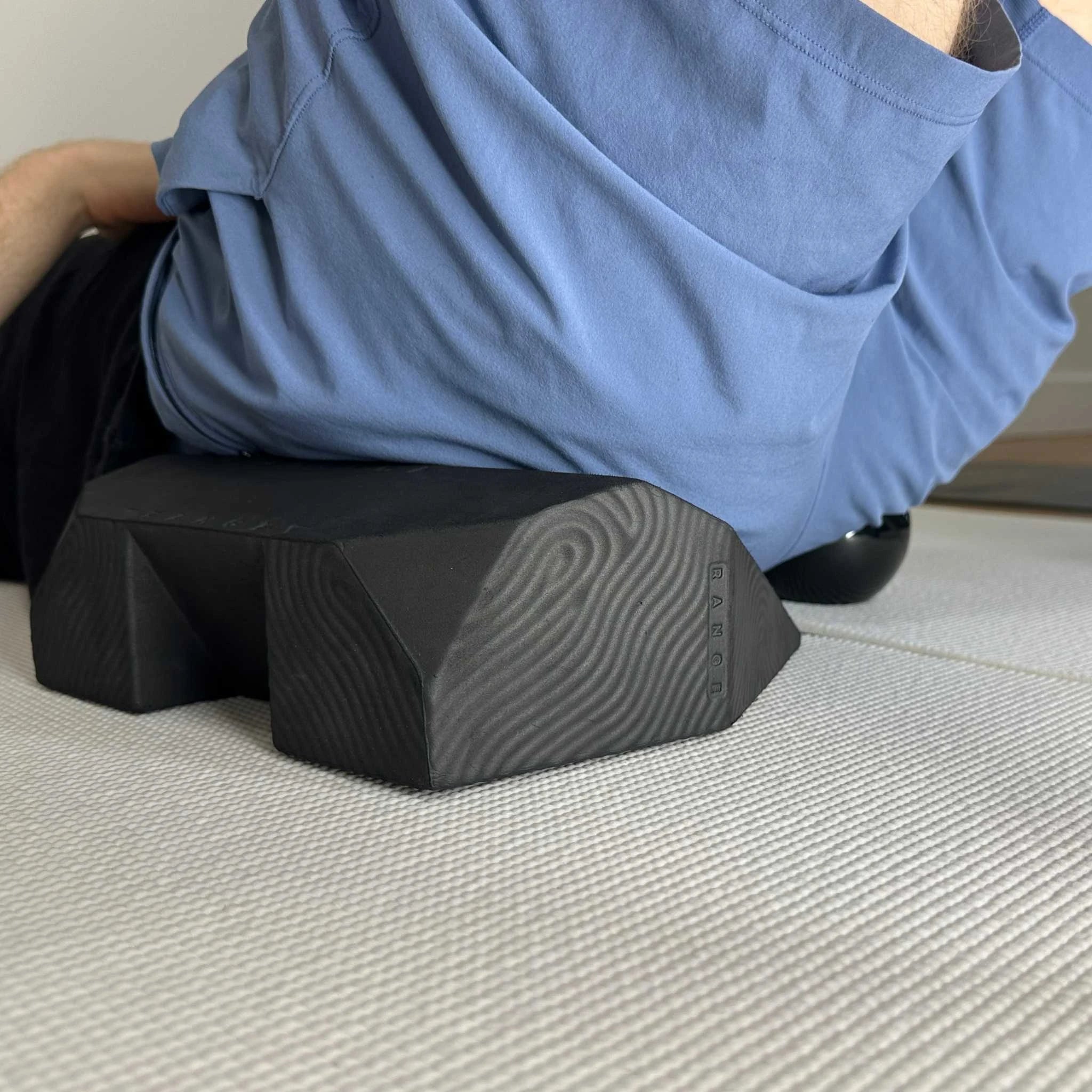 It is not a yoga block. The asymmetric shape, rear notch, and grip surfaces are specific to how the Hip Hook and Range are used. A flat block doesn’t replicate what the geometry does.